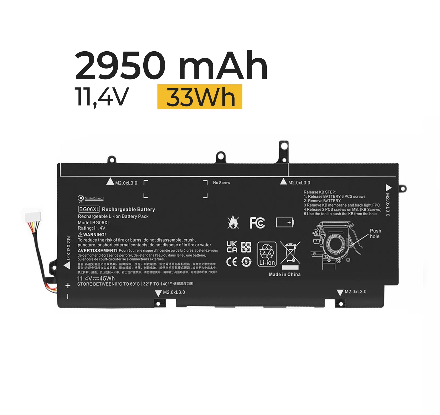 Caracteristiques: 11.4V 2950mAh, Batterie aux normes CE, garantie 12 mois.