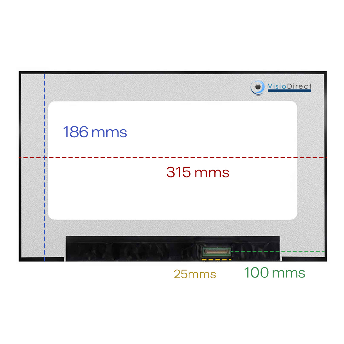Dalle ecran tactile 14 LED de marque Visiodirect compatible avec Dell PN JTPF4, Resolution: 1920x1080, Connecteur a droite de 25mm 40Pin, ecrann sans fixations Taille d'ecran: 315.87(L) X186.08(H) X 5.25(l) mm